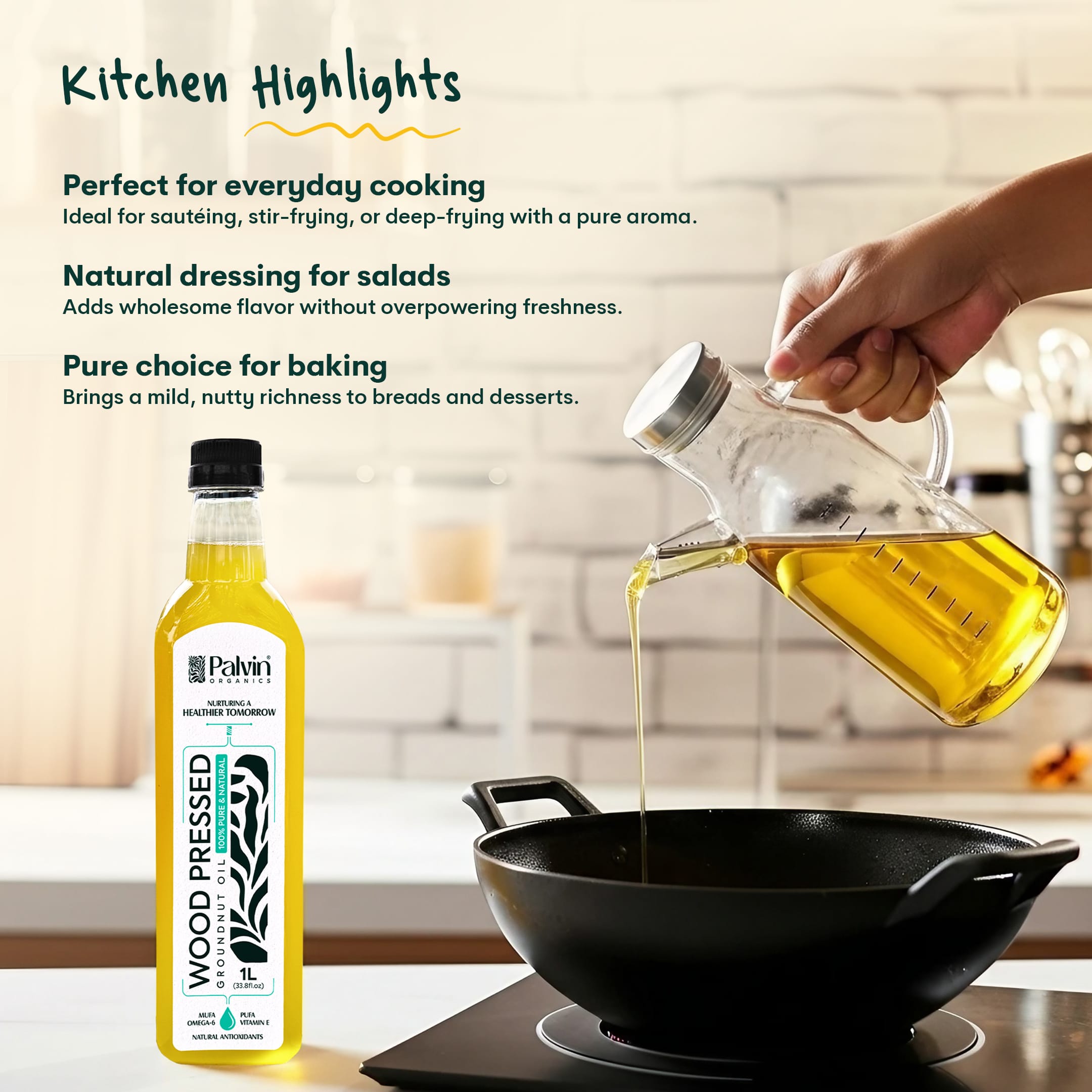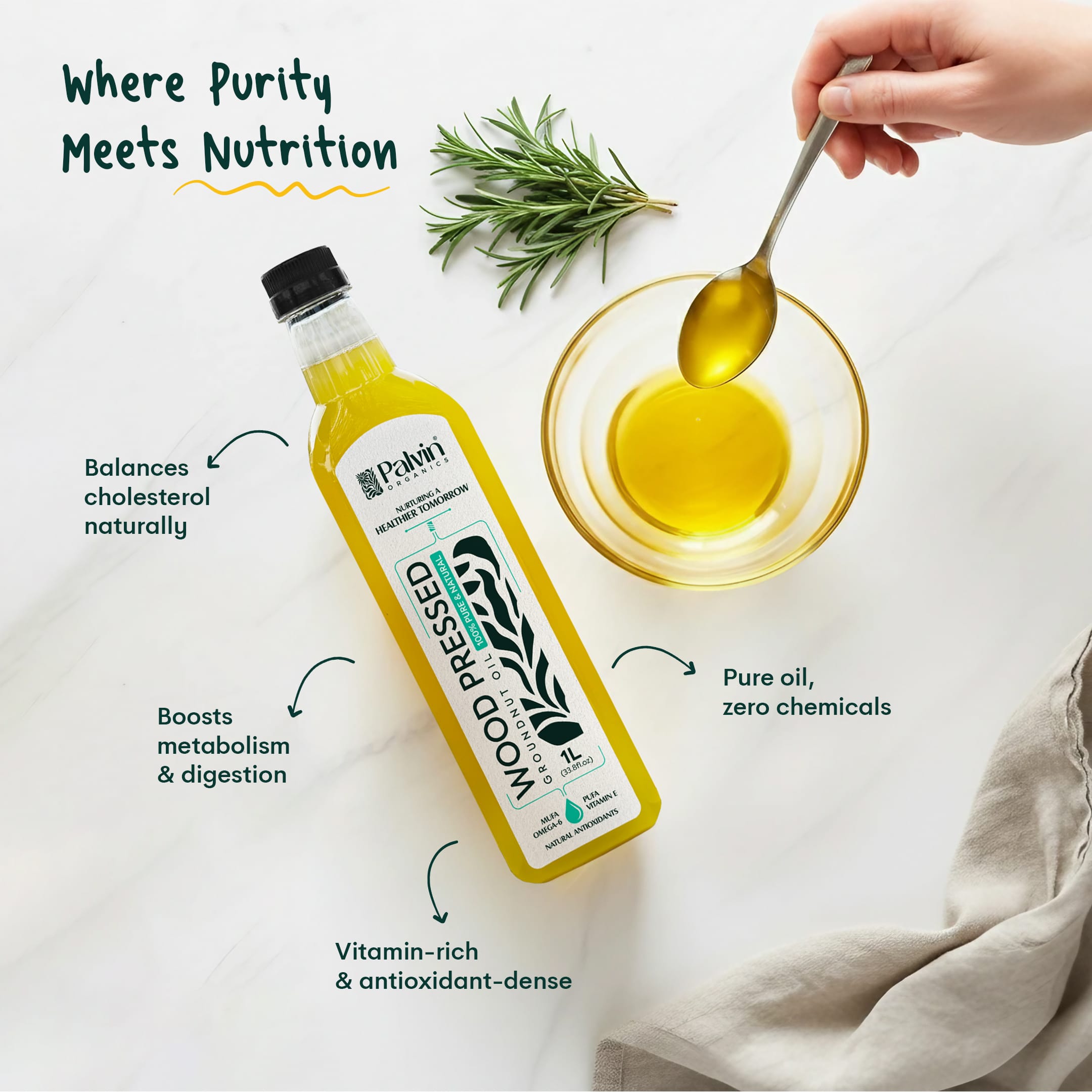 Unlike refined oils, Palvin Wood Pressed Oil retains essential fatty acids, antioxidants, and vitamins — making it light on digestion, rich in flavor, and perfect for everyday cooking. It’s completely free from chemicals, preservatives, and artificial processing — ensuring pure, unrefined goodness in every bottle.